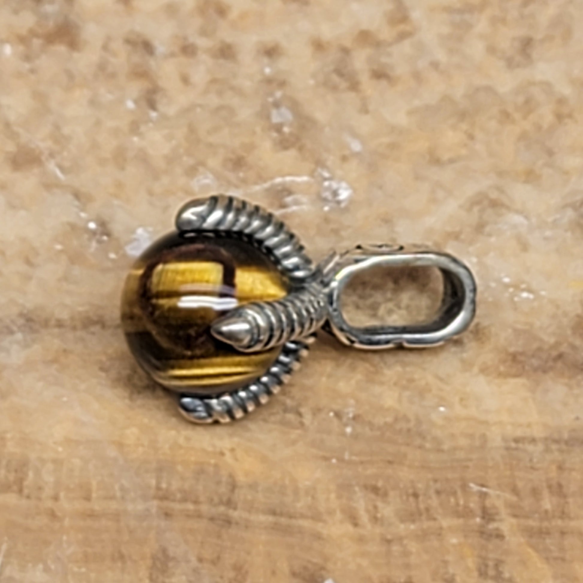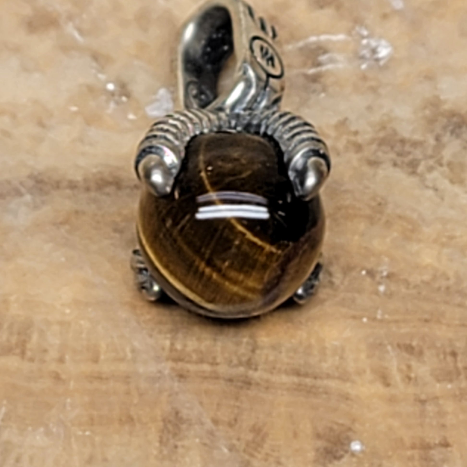 John Hardy Men's Eagle Claw 925 Sterling Silver Necklace Brown Tiger Eye Pendant